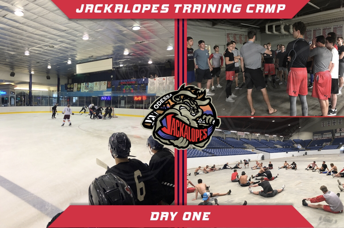 Day one is now in the books for Odessa Jacks Head Coach Todd Watson and his staff. Compete levels were high for the team both on and off ice as Coach Watson put the players through a pretty grueling on ice session followed by two off ice sessions run by coach Phillips including some off ice base line testing. “We have a good idea where we stand for the most part early on in camp with our team both on and off the ice”. states Phillips. The staff was upbeat and happy with the first day and is interested to see if the players can continue at these high levels as camp progresses.
