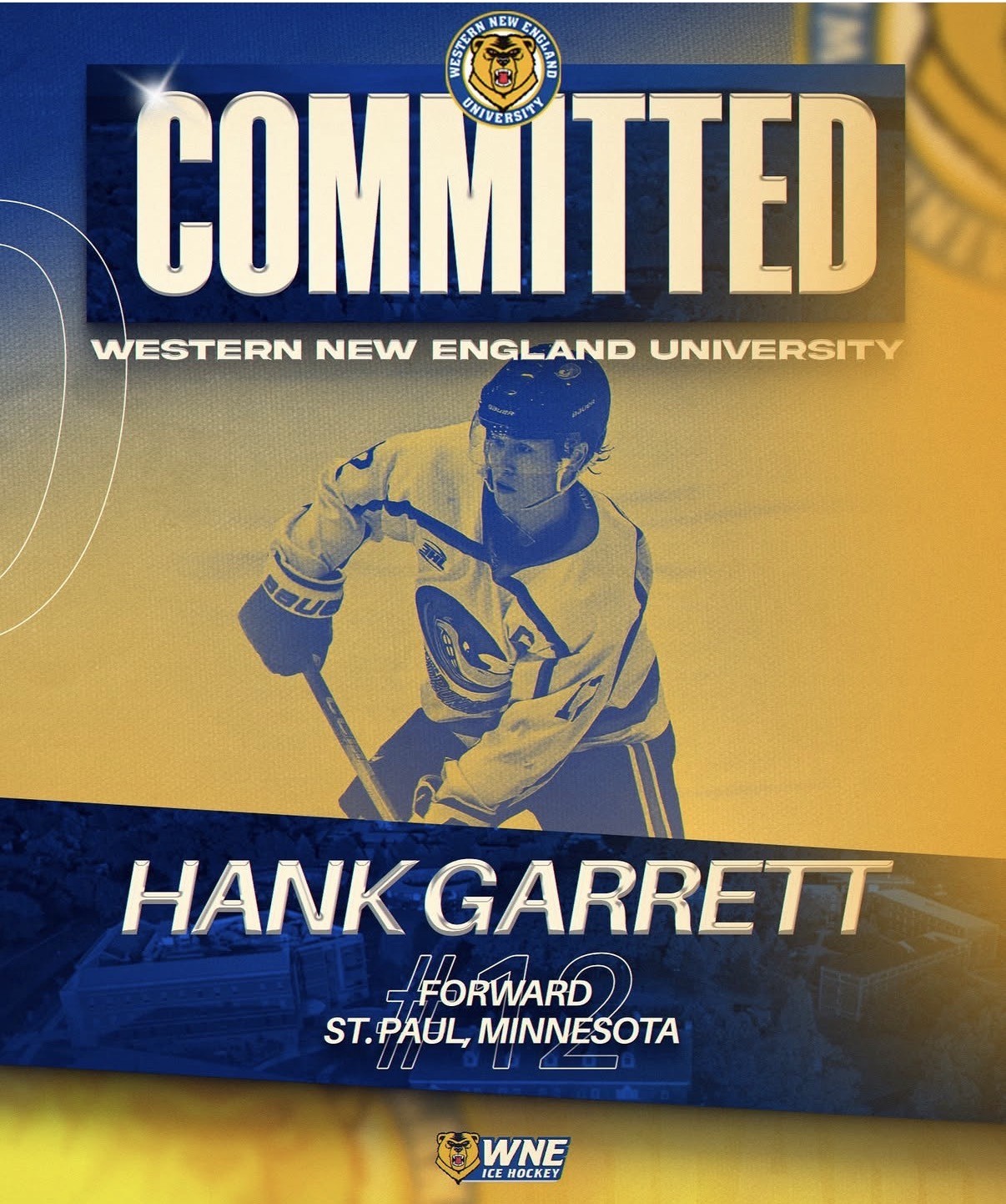 Texas Roadrunners Captain Hank Garrett has committed to attend Western New England College and play for the Golden Bears next season. WNEC plays in the Conference of New England NCAA D-3 Matt Smith is the Head Coach of the team located in Springfield, MA. “I’m excited to welcome Hank to Western New England University. He’s a high character competitor who will help shape this next chapter of Golden Bear Hockey.” Stated Smith