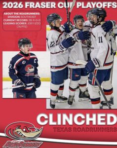 The Texas Roadrunners have become the third team in the NA3HL to move on to the Fraser Cup Playoffs. With a weekend sweep of the Bayou State Rougarou the Runners will return to post season action.